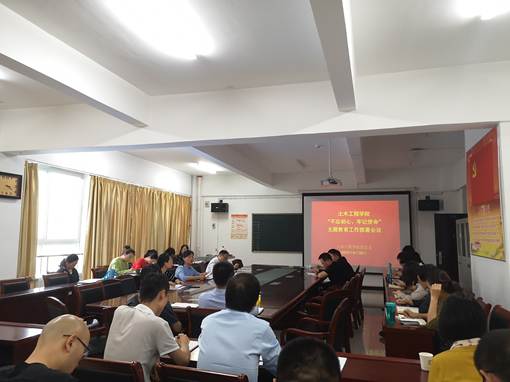 9月20日下午,土木工程学院党总支在土木楼503党员活动室召开“不忘初心、牢记使命”主题教育工作部署会,会议由党总支书记张利主持,我院领导班子和全体党员参加会议。