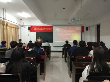 4月2日晚,土木工程学院第三十三期业余团校开班仪式在土木楼603成功举办,我院15级辅导员于洋老师、17级辅导员王萌亚老师、徐晓楠老师以及本期全体入党积极分子参加了此次开班仪式。在庄严的团歌声中,开班仪式正式拉开序幕。