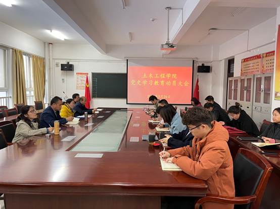 2021年3月26日,土木工程学院党史学习教育动员大会在503会议室召开。院领导班子成员、全体教职工参加会议,会议由院党委书记范丽波主持。