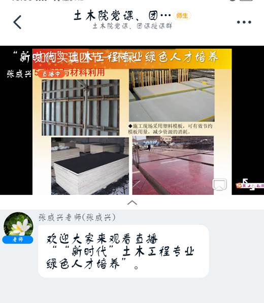 4月10日中午,土木工程学院通过线上直播平台组织开展以《新时代土木工程专业绿色人才培养》为题的党课培训,教工第一党支部书记张成兴博士担任主讲,第十四期分党校全体入党积极分子参加学习。
