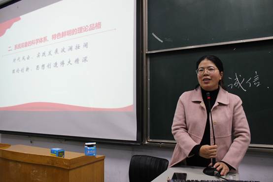 课上,李宗亚老师紧紧围绕习近平新时代中国特色社会主义思想这一主题,从“立足时间之基,回答时代之问的科学理论”和“系统完备的科学体系,特色鲜明的理论品格”两方面进行讲解,向大家诠释了习近平新时代中国特色社会主义思想的重要意义、科学体系、丰富内涵、精神实质,传达了习近平新时代中国特色社会主义思想是党和国家必须长期坚持的指导思想,是在科学社会主义焕发新生机,两种社会制度的较量呈现新态势的时代背景下形成的,是在百年不遇的世界大变局中形成的,是在十八大以来党所经历的深刻革命性锻造中形成的。她呼吁同学们努力发掘自身潜力,扎实学好专业扎实,提高政治能力,增强政治敏锐性和政治鉴别力,坚定不移坚持中国特色社会主义制度,不断践行习近平新时代中国特色社会主义思想,同学们反响强烈。