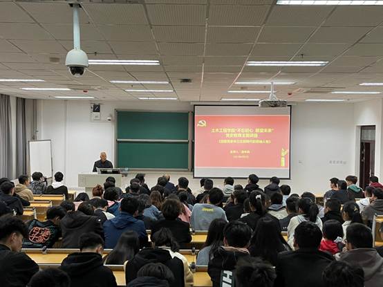 4月2日下午,土木工程学院在E-118教室开展“不忘初心 展望未来”主题党课。党课特邀请我院关工委副主任徐中森老师主讲。我院党委副书记张忠强、组织员于洋和辅导员任衍枭及学生党员、青年马克思主义培训班学员、20级团员代表200余人聆听了党课。