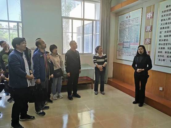在新郑县抗日民主政府旧址,同志们了解到抗日战争爆发后,具有革命传统的新郑人民在中国共产党的领导下,开展了轰轰烈烈的抗日救亡运动。1945年春,八路军皮定均、徐子荣部密禹新独立团在团长沈甸之率领下开赴风后岭地区,建立抗日根据地,成立新郑县抗日民主政府,领导新郑、密县、禹县三县部分地区的抗日工作。人民政权建立后,发动群众,建立武装,开展减租减息和倒地运动。攻辛店,打太清,伏击消灭日寇,摧毁日伪政权,为夺取抗日战争的胜利作出了积极贡献。