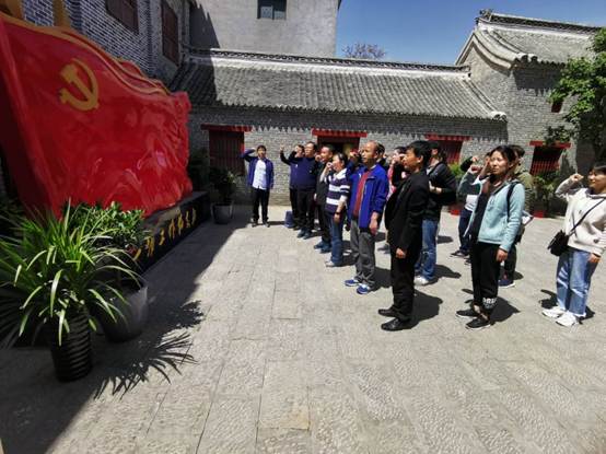 在中共许昌第一个支部委员会旧址,全体党员面对党旗再次重温入党誓词,牢记宗旨,锤炼党性,坚定信念,砥砺前行。通过观览一幅幅图片、一段段文字、一件件历史实物,同志们了解到,1925年秋,受中共豫陕区委书记王若飞派遣,黄埔军校一期学员郭安宇在石固南寨龙王庙台小学建立了中共许昌第一个支部委员会——中共豫陕区石固南寨支部委员会,点燃了许昌地区的革命火种,推动了许昌地区的群众运动,许昌成为了河南的政治斗争中心。