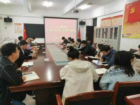 4月23日下午,土木工程学院“学党史 悟思想 开新局”党史学习教育读书班,在503会议室正式开班。院党委书记范丽波做开班讲话,全体教师参加。