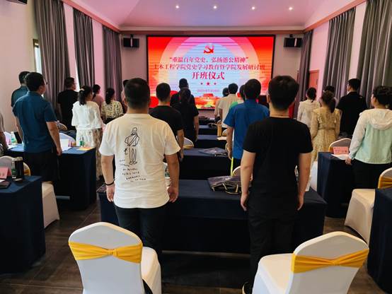 为庆祝中国共产党成立100周年,弘扬愚公精神,7月10日下午,“重温百年党史,弘扬愚公精神”土木工程学院党史学习教育暨学院发展研讨班在愚公移山红色教育基地正式开班,我院教师党员代表、党外人士代表等共计32人,参加此次活动,仪式由院党委副书记张忠强主持。
