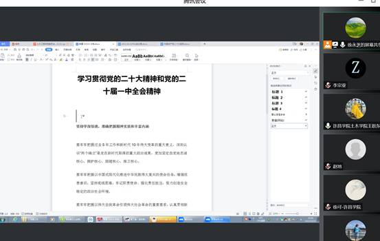 为学习中国共产党第二十次全国代表大会精神,土木工程学院教工第一党支部于10月30日在线上开展了主题党日活动,支部书记徐永芝主持,全体支部党员参加。