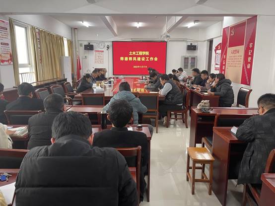 11月17日,土木工程学院在503会议室召开师德师风建设工作专题会议,学院党政领导班子、各系(教研室)主任、党支部书记及学院全体教工参加会议。