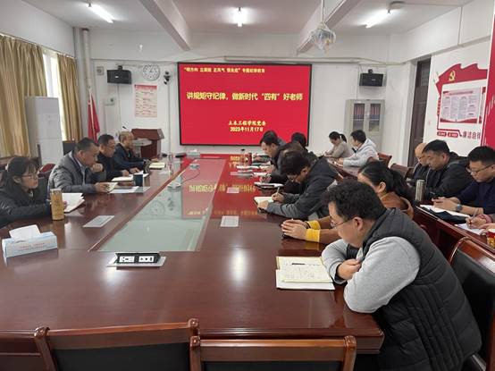党委书记姚向峰以《讲规矩守纪律,做新时代“四有”好老师》为题,以违反师德师风典型案例的分析解读为切入点,带领大家探讨如何严格遵守《新时代高校教师职业行为十项准则》等相关规定,在纪律规矩的约束下当好新时代的“四有”好老师。