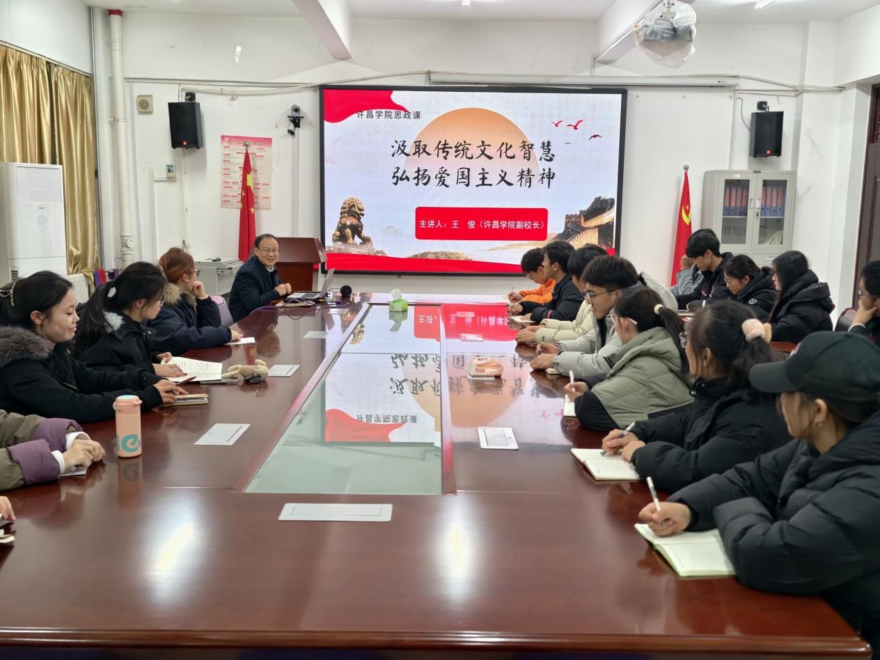 1117日晚,许昌学院副校长王俊教授在土木工程学院503会议室,以“汲取传统文化智慧,弘扬爱国主义精神”为题,为土木工程学院、体育学院学生代表带来一堂内涵深刻的思政课。
