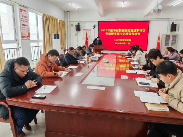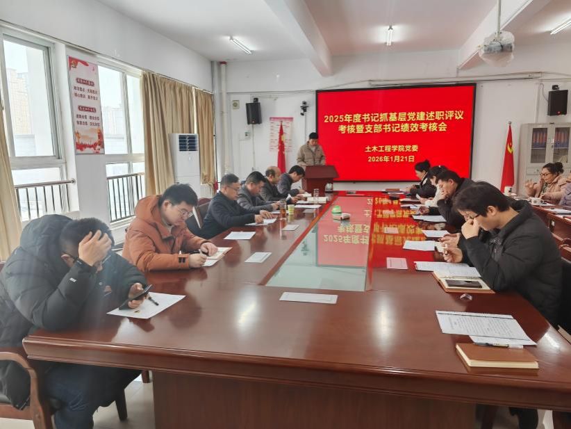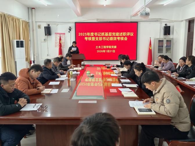 2026年1月21日,土木工程学院党委组织召开2025年度党支部书记抓基层党建述职评议大会。学院党委委员、党支部书记、党员代表参加会议,学院党委书记姚向峰主持会议。食品与药学院党委副书记吕欣列席会议并督导指导。