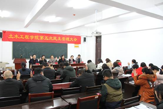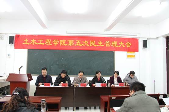 2019年1月7日下午,土木工程学院在603会议室隆重召开了第五次民主管理大会。院领导班子以及全体教职员工39人出席了本次大会,会议由党总支书记、工会主席张利主持。