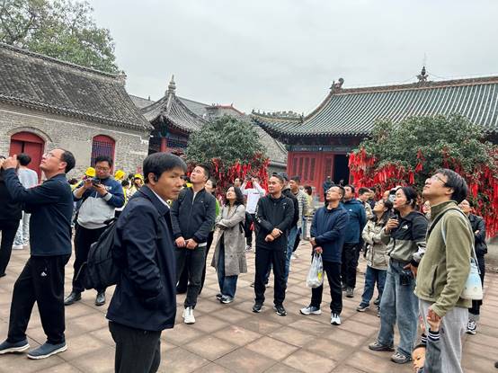 在神垕古镇老街,我院教师朱亚红客串“导游”,她从建筑的结构、设计等方面给大家讲解了老街的寨墙、伯灵翁庙、关帝庙等,让老师们深入了解神垕的悠久历史和建筑文化。老街到处渗透着丰厚的历史文化,除了闻名的钧瓷,其沿街两侧的建筑景观独特,类型丰富,主要包括宗教建筑、民居建筑等。大家置身于满眼秋色的古镇,呼吸着新鲜的空气,你一言我一语,相互交流思想,畅谈过去,展望未来,气氛和谐热烈,心情格外舒畅。
