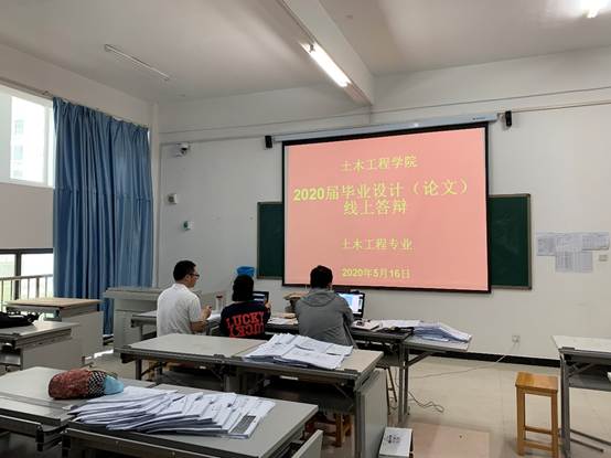为保障毕业设计(论文)答辩顺利有序进行,我院成立了以院长为组长、主管教学的副院长为副组长、各系、教研室负责人及教学秘书为组员的答辩工作领导小组,制定了《土木工程学院2020届毕业设计(论文)答辩工作方案》,各专业根据本专业毕业设计(论文)成果的特点,制定了本专业的答辩工作方案。并于5月13-15日期间做足答辩前准备工作,包括答辩使用的平台、设备调试等等,并开展了答辩预演。