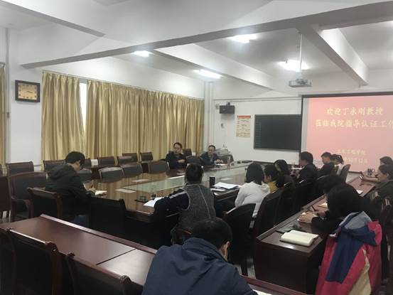 2019年10月12日,我院邀请到河南工业大学土木工程学院丁永刚教授来我院指导专业认证工作。丁教授做了“基于专业认证的土木工程专业建设”的报告,报告会由王俊院长主持,认证推进组全体成员参加。