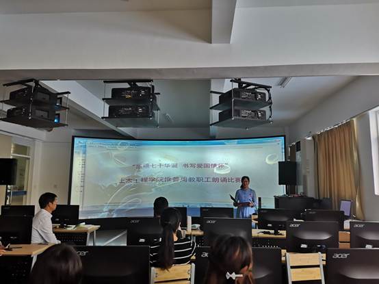 活动主要分为书法比赛和朗诵比赛两部分,在书法比赛中,各位教师热情参与,积极上交毛笔、硬笔作品,并现场展示粉笔字,经大众投票,评选优秀作品予以奖励。朗诵比赛也吸引了众多教师的参与,大家选取爱国题材的诗歌作为朗诵曲目,歌颂伟大祖国的繁荣昌盛,为新中国成立70周年献礼。