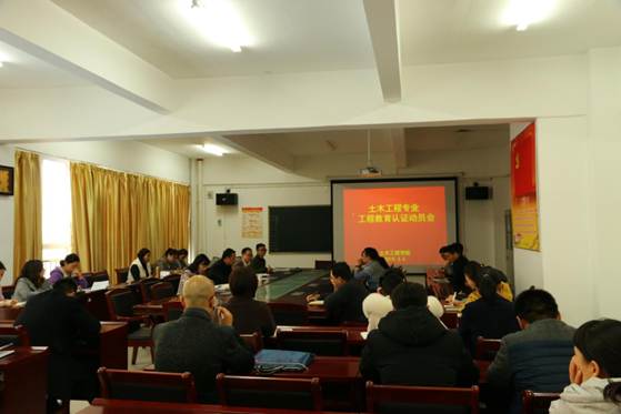 2019年3月5日下午,土木工程专业工程教育认证动员会在土木楼503顺利召开,许昌学院教务处副处长杜书廷,土木工程学院党总支书记张利、土木工程学院院长王俊和全院教师参加。会议由王俊院长主持。