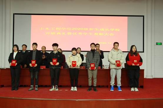 12月11日,土木工程学院在创新创业楼学术会议中心举行2020级新生成长学校开班典礼暨优秀学生表彰大会。副院长潘春彩、学生工作处副处长李鹏,土木工程学院领导班子、全体教师和233名新生参加大会。