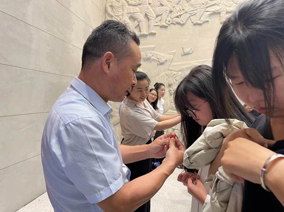 最后,院党委书记范丽波、院长杜书廷和党员同志们一同为新党员佩戴党员徽章。