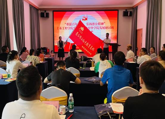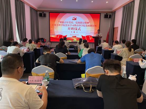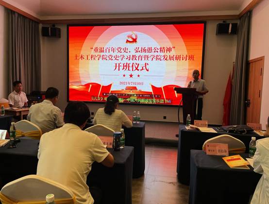 为庆祝中国共产党成立100周年,弘扬愚公精神,7月10日下午,“重温百年党史,弘扬愚公精神”土木工程学院党史学习教育暨学院发展研讨班在愚公移山红色教育基地正式开班,我院教师党员代表、党外人士代表等共计32人,参加此次活动,仪式由院党委副书记张忠强主持。