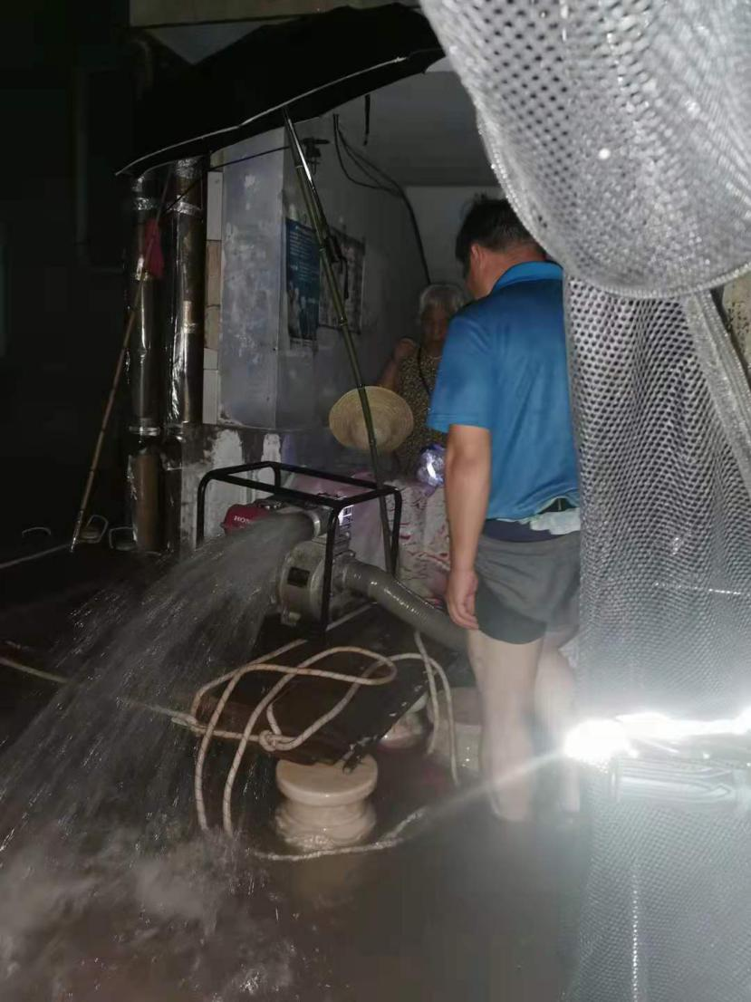 (团委副书记——冯帆在帮助居民抽取地下室积水)