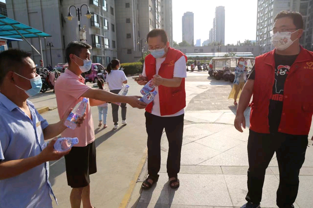 三十七八度的高温下,杨毅哲同志顾不上擦汗遮阳,在每层楼栋中穿梭不停地通知住户下楼有序登记信息进行检测的同时,还维持着现场的秩序,做好现场解释沟通,安抚每一颗焦灼的心。热心的住户递给他们一瓶水,他们也只是回应了声“谢谢”,就继续工作了。到了深夜接近凌晨时,一天的高强度工作终于结束了,在志愿者们和医务工作者的无私奉献下,家属院核酸检测工作也顺利落下帷幕。