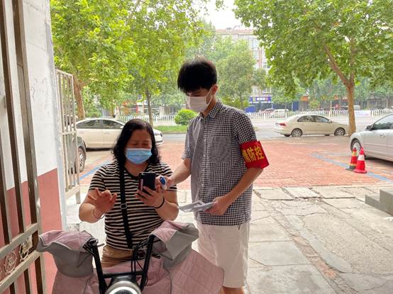 8月14日,20级土木三班的王青竹加入到家乡防疫工作当中。为过往人员进行信息登记和体温测量,同时跟随医护人员对村里一些行动不便的老人进行入户核酸检测。