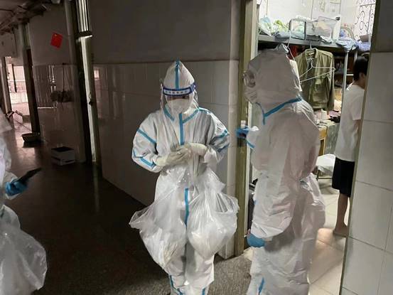书记院长冲锋在前,用行动为学生保驾护航。在疫情防控最关键时刻,在学生最需要的地方,土木院应急处突志愿服务队在仅有13名成员的情况下,毅然担负起了253间宿舍,1450名学子的一日三餐和每日2次入室核酸检测服务工作。封闭初期,在后勤保障体系还未能完全发挥效能时,为了保障学生的饮食和身体健康,我院自费给学生提供加餐以及应急药品。对于学生的任何疑问,我们高度重视,挨个询问,逐一疏导,积极沟通协调。
