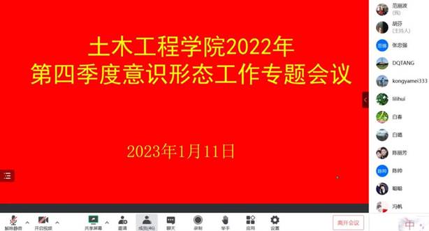 1月11日,我院召开2022年第四季度意识形态专题会议,全体教师参加,院党委书记范丽波主持。