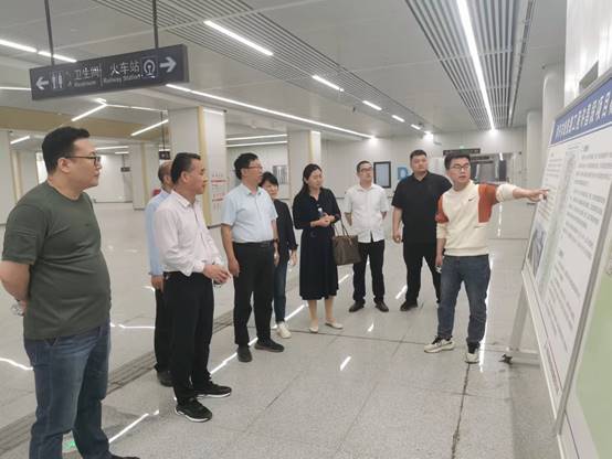 在许昌市域轨道交通有限公司负责建设管理的郑许市域铁路工程体育中心站和许昌东站现场,该公司办公室主任李世崇介绍了郑许市域铁路工程的设计、建设、运营、管理等情况,对我校道路桥梁专业办学提出了合理化建议,双方重点就城市轨道交通未来发展和人才需求进行了交流。