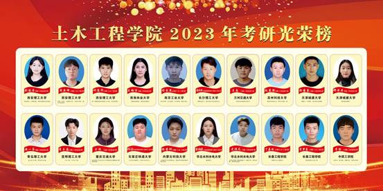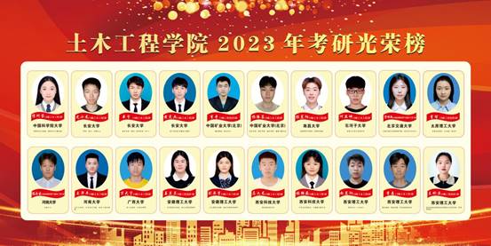 2023年,我院考研学子喜讯频传。据统计,我院2023届学生共考取国内研究生40人,其中10名被长安大学、中国矿业大学(北京)、南昌大学、石河子大学、广西大学、太原理工大学、北京交通大学等“211工程”高校录取。