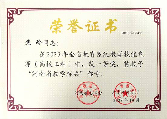 “河南省教育系统教学技能竞赛”是由河南省总工会和河南省教育厅联合举办,在全省教育系统组织开展的教学技能品牌活动。自接到通知,我院高度重视,精心组织,为参赛教师从教学设计、课件制作、教学技巧、教学仪态等方面多次进行针对性指导和演练,促进了参赛教师综合素质、专业教学水平和教学创新能力的全面提高。最终,焦玲老师凭借扎实的基本功、熟练的教学技能,经过层层选拔脱颖而出。