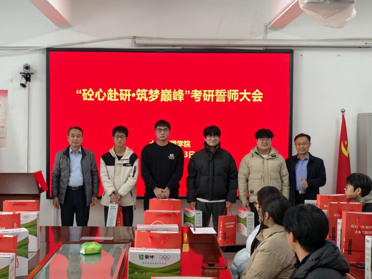 此次考研誓师大会,既是考前的动员鼓劲会,更是学院传递关怀与期许的暖心会。以今日为新起点,愿全体考研学子带着学院的坚实保障与师长的殷切嘱托,在考场上挥洒汗水、书写荣光,用执着与坚守筑牢梦想基石,以优异成绩为青春作答、为学院增辉!