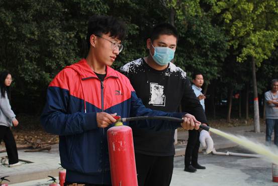 第三,灭火作业演练。保卫部(处)工作人员通过现场演示,向大家生动而详细地介绍了干粉灭火器的使用方法。随后,在场师生逐一进行了灭火器的灭火体验。