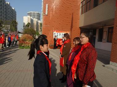 兴业路小学的三位学生代表首先为出席仪式的领导敬献红领巾, 随后,张利书记致辞。她指出,许昌学院土木工程学院与兴业路小学之间在志愿活动中的交流互动,进一步诠释了“友爱、奉献、互助、进步”的志愿精神。此次志愿服务基地的建立,为我院学生提供了一个宝贵的志愿服务平台,今后,我院的志愿服务活动仍将坚持“服务大局、奉献社会、温暖他人、彰显爱心”的宗旨,切实履行“志愿服务、竭诚奉献”的使命,与兴业路小学携手用爱心传承文明、用真情奉献社会、用行动实现诺言,为“构造一个有温度的志愿活动”贡献力量!