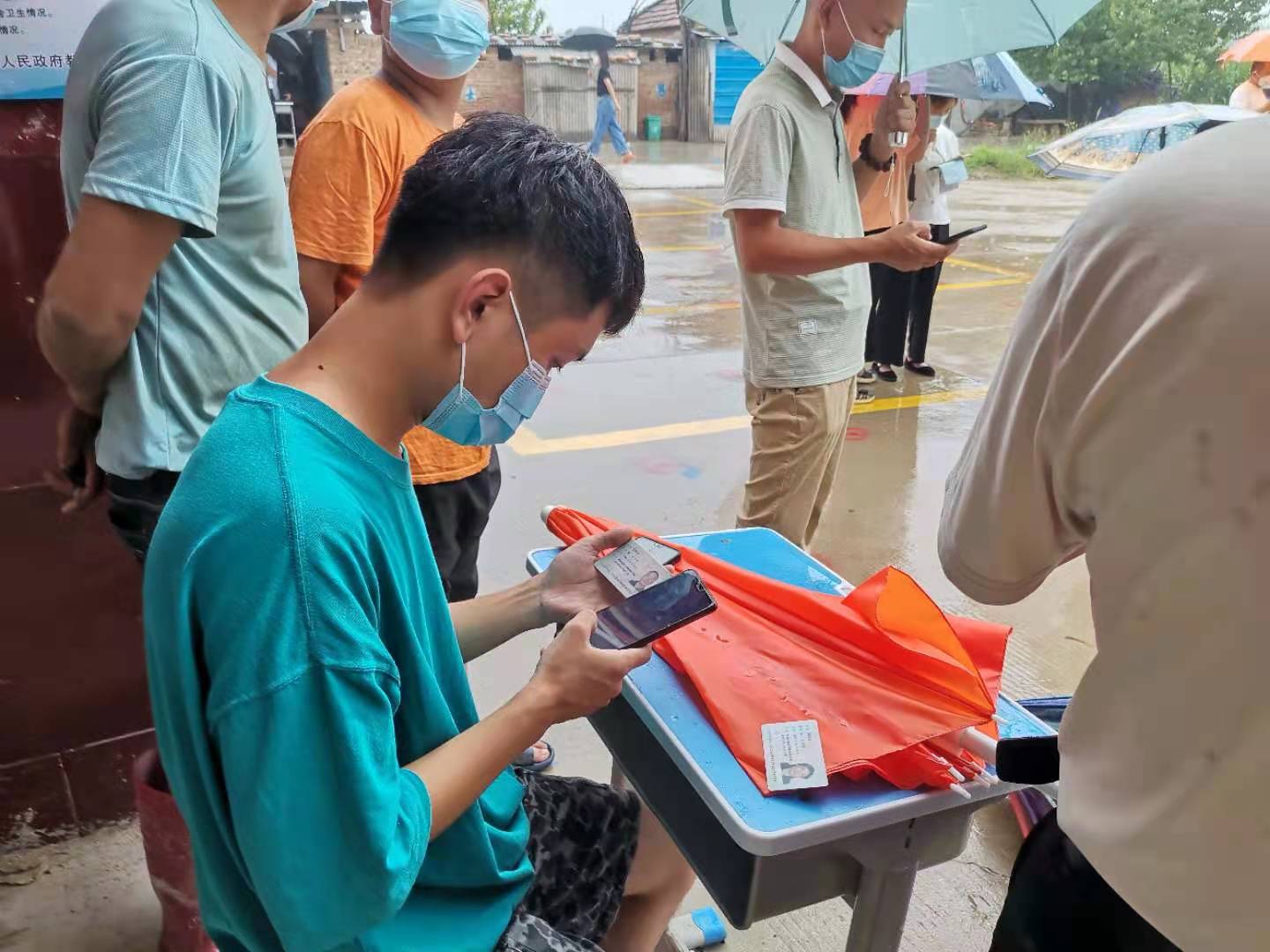 洪水刚刚过去,疫情又随之袭来。为阻止疫情扩散,20级土木三班的杨恩浩加入了本村的疫情防控队伍,与村里的党员同志们一起在村口设置疫情防控检查点,提醒进出村庄的人员正确佩戴口罩,并进行测温查验行程码和健康码。通过参加防疫志愿者服务活动,杨恩浩正在感受到了党员的先锋模范作用,身边的党员放弃休假、顾不上休息、顾不上吃饭,却毫无怨言,舍小家为大家,用实际行动诠释了共产党员全心全意为人民服务的宗旨。