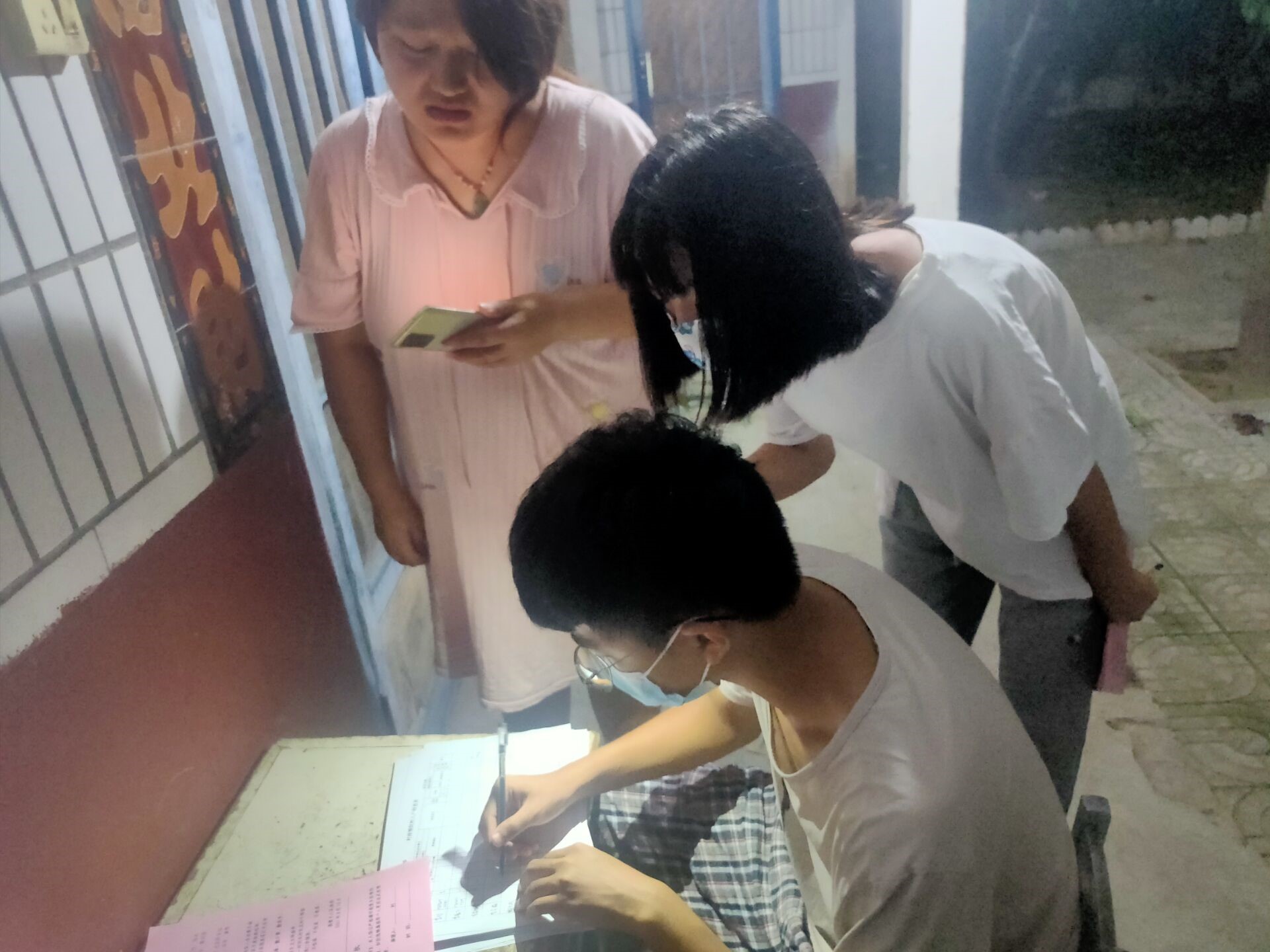 在疫情防控志愿活动中,20级土木三班李留凯同学的工作是与其他志愿者一起,挨家挨户发放疫情防控告知书,并登记村民的疫情防控基本休息,登记内容是村民疫苗接种情况和是否为7月5日后离开或返回家乡的人员,告知他们是否需要隔离和防疫相关的注意事项。志愿者们认真高效的工作,受到村支部的高度评价。