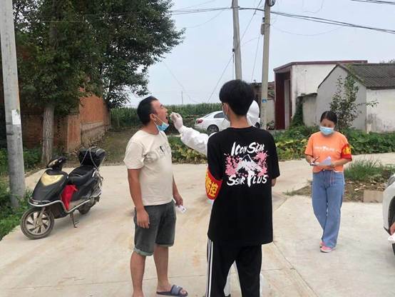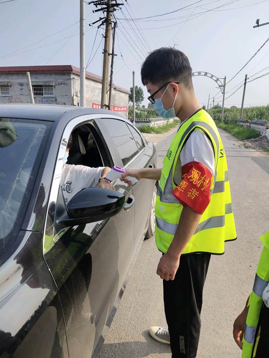 8月14日,20级土木三班的王青竹加入到家乡防疫工作当中。为过往人员进行信息登记和体温测量,同时跟随医护人员对村里一些行动不便的老人进行入户核酸检测。