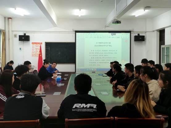 会上,冯帆老师领学了共青团中央全国学联印发的《关于落实共青团和学联对高校学生会(研究生会)指导管理责任的若干规定(试行)》、《关于推动高校学生会(研究生会)深化改革的若干意见》、《关于学联学生会工作人员改进作风服务同学的若干规定》等文件,冯帆老师强调,作为学生组织工作人员,要贯彻全心全意为同学服务的宗旨,在日常生活中以身作则,摆正工作态度,杜绝出现“学生官”的错误行为,以营造风清气正的组织氛围。