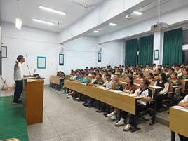班会过程中,同学们都洋溢着对大学生活的期待和热情,认真听讲,积极提问,并表示一定不辜负家人和学校的期望,只争朝夕,不负韶华,在大学校园中绽放青春之花!