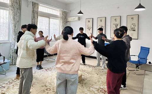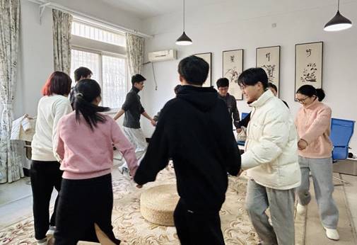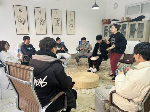 1月4日,我院“艺”起心疗工作坊在A3-110团辅教室为即将参加期末考试的同学们做了一场以“音乐分享”为主题的团辅减压活动,活动由我院2023级辅导员于洋老师主持,2021级辅导员牛伟娜和2022级辅导员赵地老师以及来自各个年级的10名同学参与活动,学校心理健康教育中心丁玉连老师到场指导。