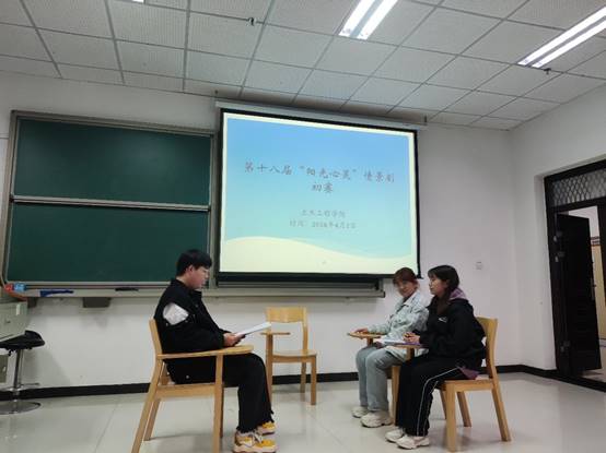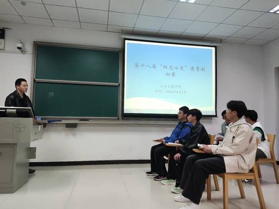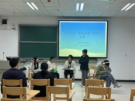 4月2日晚7点,我院在文综楼E-212举行题为“拥抱阳光,润心前行”的心理情景剧比赛。旨在通过戏剧的形式,深入探索当代大学生的内心世界,展现他们在成长过程中所面临的心理挑战与挣扎,并寻求积极健康的解决之道。比赛评委由于洋、赵地、杨毅哲、刘树祥等老师担任。