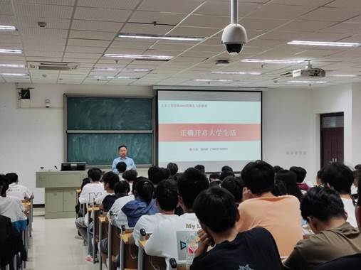 讲座伊始,姚向峰书记指出新生在适应新环境的过程中可能会遇到的各种困难和挑战,并详细讲解了如何正确开启大学生活,包括如何调整心态、如何规划时间、如何建立人际关系等多个方面。