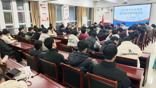 为扎实推进2025届毕业生考研工作,2月26日晚,土木工程学院在503会议室举行考研复试调剂指导座谈会。院长杜书廷、学校学科建设办公室(研究生工作办公室)副主任黄春水、副院长尚世宇、各系系主任和骨干教师、毕业班辅导员及25届考研学生参加会议,会议由党委副书记张忠强主持。