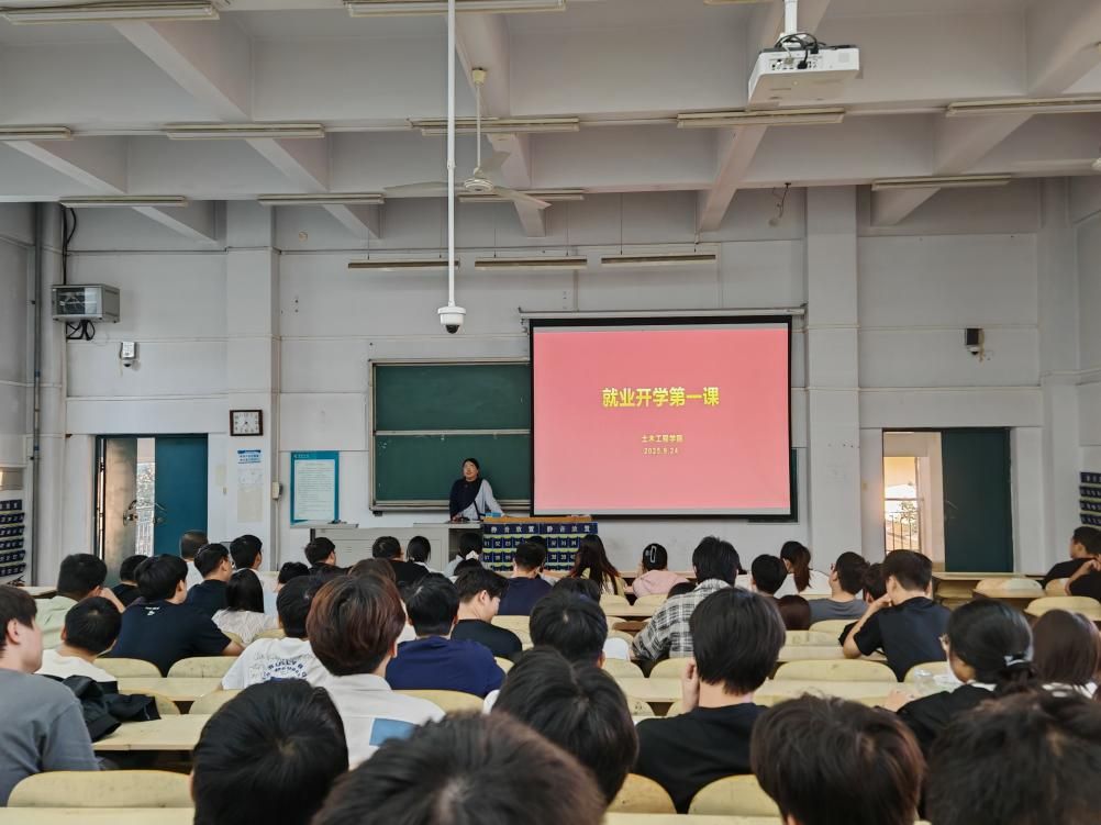 为帮助毕业生提前规划职业路径,提升就业竞争力,9月24日,土木工程学院在B合五教室开展就业教育“开学第一课”。就业专干李宗亚主讲,毕业班辅导员任衍枭统筹组织,2026届毕业生全程参与。