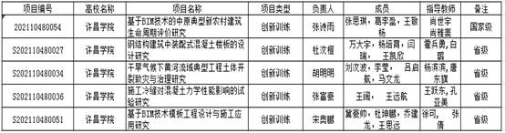 近日,教育部高等教育司、河南省教育厅相继下发了《关于公布2021年国家级大学生创新创业训练计划项目和重点支持领域项目名单的通知》(教高司函〔2021〕13号)和《河南省教育厅关于公布2021年大学生创新创业训练计划项目名单的通知》(教高〔2021〕359号)等文件,我院推荐的5项大学生创新创业训练计划项目获批国家级和省级项目。其中张诗雨等(指导老师:尚世宇 尚雅斐)申报的《基于BIM技术的中原典型新农村建筑生命周期评价研究》项目获国家级立项,杜汶橙、胡明明、张富豪、宋奥鹏等申报的4项项目计划(指导教师:霍兵勇、杨滨滨、徐可、王跃东等)等获省级立项。